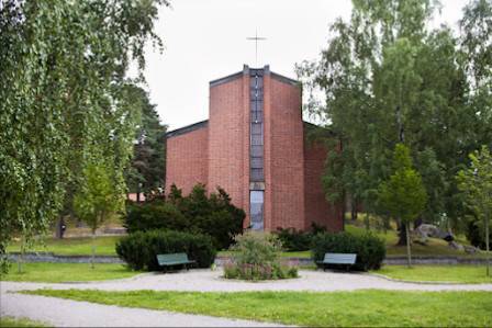 Var på begravning här. En modern kyrka. Samlingssalen som vi satt i efter begravningen kändes som en konferenslokal. Trevlig personal. Positivt att man kan ha allt på samma ställe. Inte så mysigt men praktiskt.