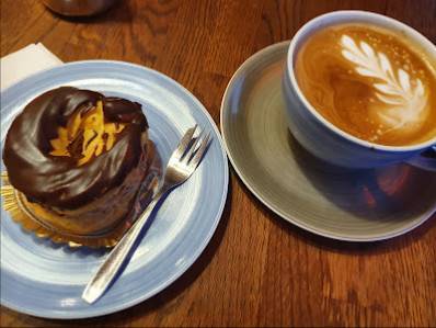 Andre interessante oplysninger: Udendørsservering, Spisning på stedet, Levering, God kaffe, Lækker dessert, Spisning alene, Et godt sted at bruge bærbar computer, Kørestolsegnede siddepladser, Kørestolsegnet indgang, Kørestolsegnet parkering, Hurtig snack, Kaffe, Morgenmad, Frokost, Dessert, Siddepladser, Toilet, Afslappet, Roligt, Grupper, Debetkort, Kreditkort, NFC-mobilbetalinger, Højstole, Velegnet til børn, Mulighed for parkering i parkeringsanlæg uden beregning, Mulighed for parkering på gaden uden beregning, Parkering.